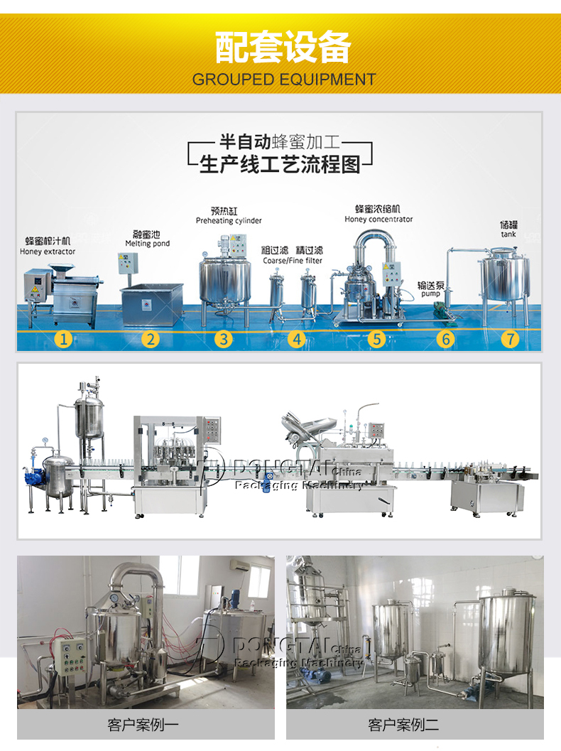1、該機為全自動蜂蜜定量灌裝機,配有自動攪拌功能,使物料混合更加均勻 ,有效的解決灌裝誤差大的問題;