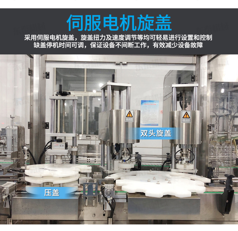 2、灌裝機以進口PLC電腦控制、伺服驅動計量,全彩色觸摸屏人機界面,一鍵完成計量切換確保容量之調整簡易、快捷、準確。是任何形式的灌裝機無法替代的;