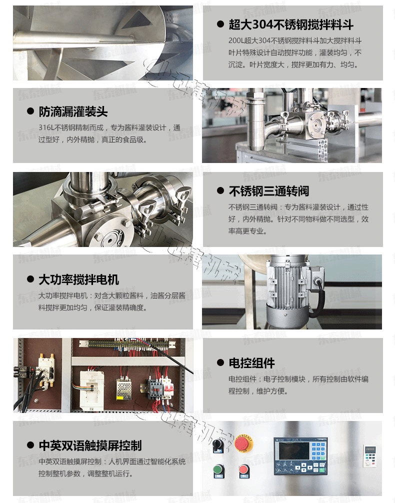 2、 醬料灌裝機(jī)設(shè)備全不銹鋼制作,衛(wèi)生、安全;