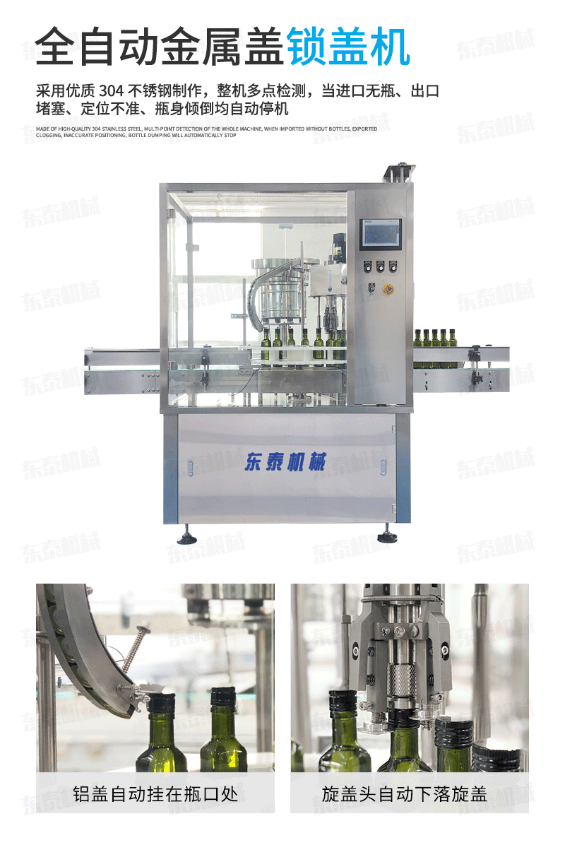 2.菜籽油自動(dòng)灌裝機(jī)生產(chǎn)線整機(jī)采用SUS304不銹鋼框架,與物料接觸部位均采用優(yōu)質(zhì)316L不銹鋼材質(zhì)好。外包不銹鋼和鋼化玻璃門罩將機(jī)體密封,連接部位全部采用快接接口。