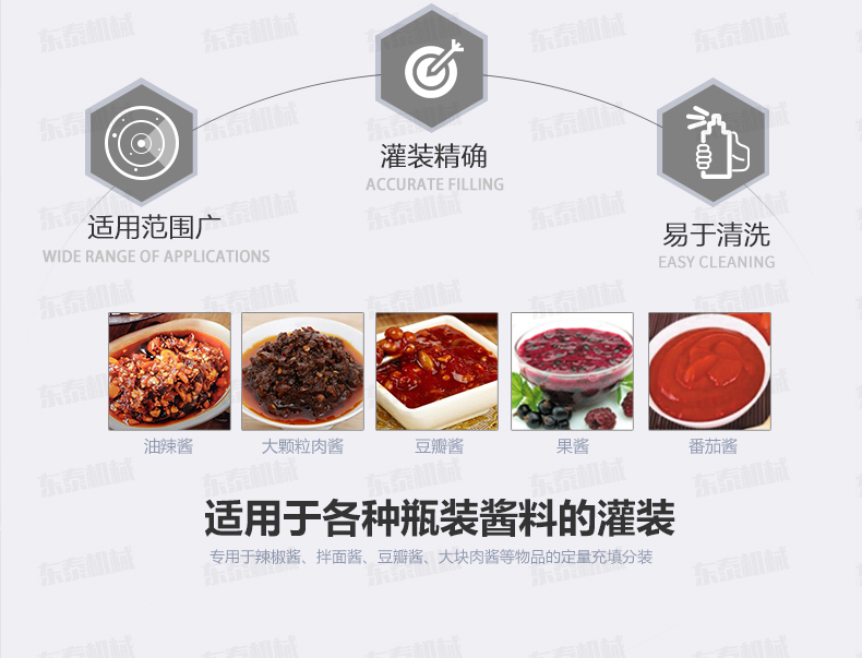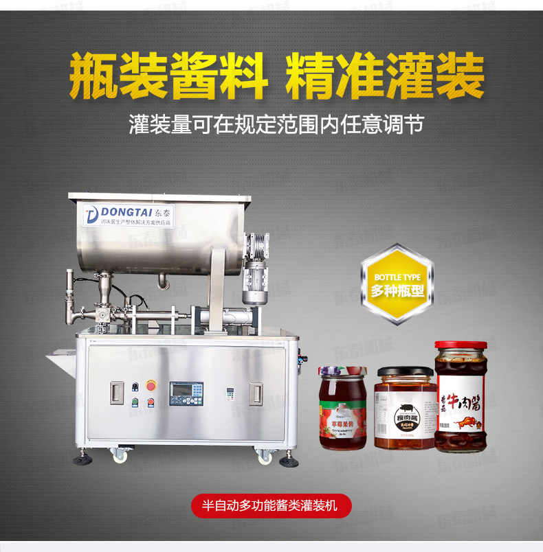 東泰機械在生產這方面是下了真功夫的,醬料灌裝機的產品質量也是這十幾年來商家們有目共睹的,高質量高品質耐用也正是,我們生產的灌裝設備的真實寫照,我們也是擁有著專門的售后服務團隊,產品質量有保障,售后服務優質不也正是大多數人所考慮的一點嗎,如果時間合適,你可以到我們這里考察一下,制定您所要的一款灌裝設備,這里給您校準好,熱烈歡迎到廠溝通交流。